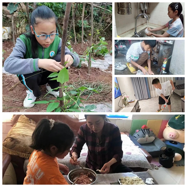 節(jié)間,組織學生開展勞動實踐。一、二年級幫忙做飯,收拾餐桌;三、四年級清洗衣物,清掃衛(wèi)生;五、六年級學會做飯,養(yǎng)護花草等;也可自由選擇去收整衣物和房間。
