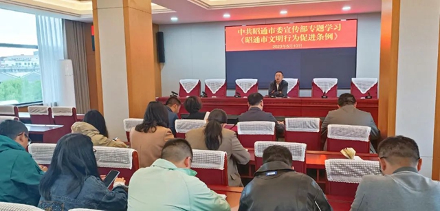 近日,省級(jí)文明單位市委宣傳部召開(kāi)干部職工會(huì)議,專(zhuān)題學(xué)習(xí)《昭通市文明行為促進(jìn)條例》。