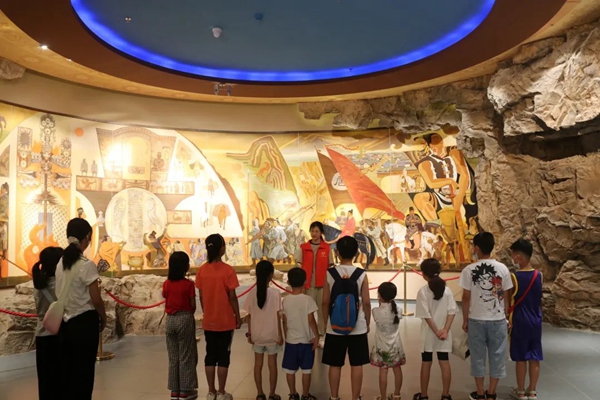 通過預約報名的12個家庭早早來到博物館大廳,澎湃的心情比當空的烈日還要火熱??炜?,那邊的小朋友自發(fā)當起了“小小講解員”,正主動為初次走進博物館的新朋友們講述文物及其背后的故事呢!集合哨聲一響,大家迫不及待地進入指定位置,安靜聆聽志愿者講述七夕節(jié)的由來和傳統(tǒng)文化習俗。