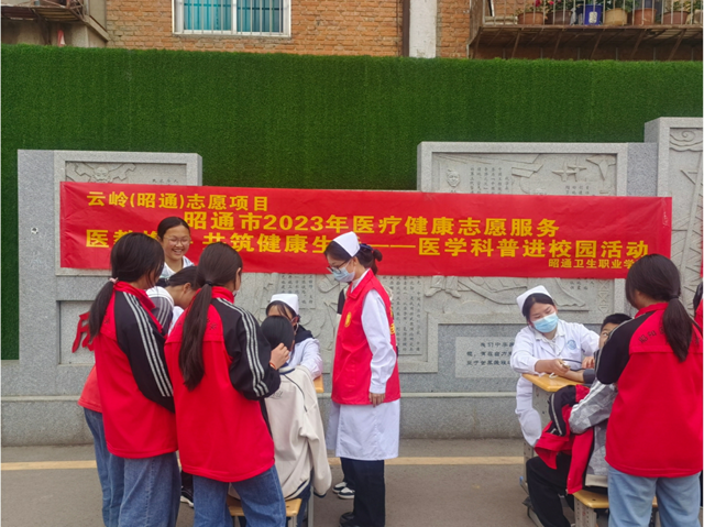 5月12日“國(guó)際護(hù)士節(jié)”之際,為傳承和弘揚(yáng)“奉獻(xiàn)、友愛(ài)、互助、進(jìn)步”的志愿服務(wù)精神和南丁格爾精神,助力未成年人健康成長(zhǎng),昭通衛(wèi)生職業(yè)學(xué)院青年志愿者協(xié)會(huì)醫(yī)教攜手,開(kāi)展共筑健康生活——醫(yī)學(xué)科普進(jìn)校園活動(dòng),對(duì)昭陽(yáng)區(qū)第四中學(xué)師生進(jìn)行義務(wù)測(cè)血壓等健康志愿服務(wù),增強(qiáng)師生的健康生活意識(shí)。