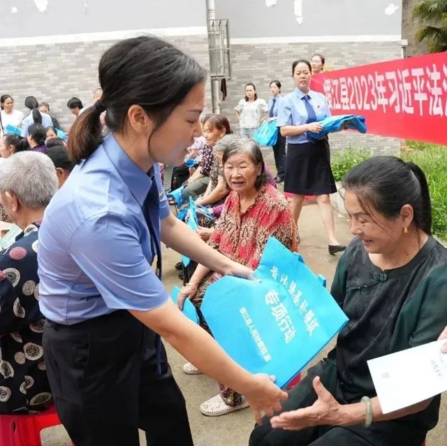 隨即,干警們向群眾發(fā)放宣傳手冊、手提袋等小禮物,面對面向群眾講解民法典、禁毒反詐、婦女兒童權(quán)益維護等知識,倡導(dǎo)大家遵紀(jì)守法,做自覺維護法治權(quán)威的良好公民。