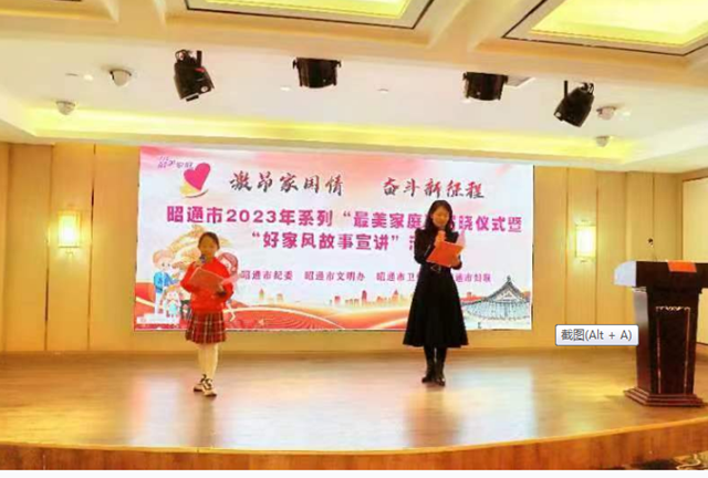 為深入貫徹習(xí)近平總書記關(guān)于注重家庭家教家風(fēng)建設(shè)的重要論述,充分發(fā)揮家庭家教家風(fēng)建設(shè)在培養(yǎng)時(shí)代新人、弘揚(yáng)優(yōu)良家風(fēng),在國際家庭日到來之際,昭通市婦聯(lián)、市文明辦等部門聯(lián)合舉辦“激昂家國情 奮斗新征程”——2023年系列“最美家庭”揭曉儀式暨“好家風(fēng)故事宣講”活動(dòng)。來自昭通市紀(jì)委監(jiān)委、昭通市文明辦、昭通市衛(wèi)生健康委的有關(guān)領(lǐng)導(dǎo),昭通市直各單位婦聯(lián)(婦委會(huì)、婦女小組)負(fù)責(zé)人,獲得云南省省級(jí)表揚(yáng)的2022年度“清廉家庭”“健康家庭”“抗疫最美家庭”代表,2023年度云南省“最美家庭”代表,2023年昭通市“最美家庭”代表等100余人參加活動(dòng)。